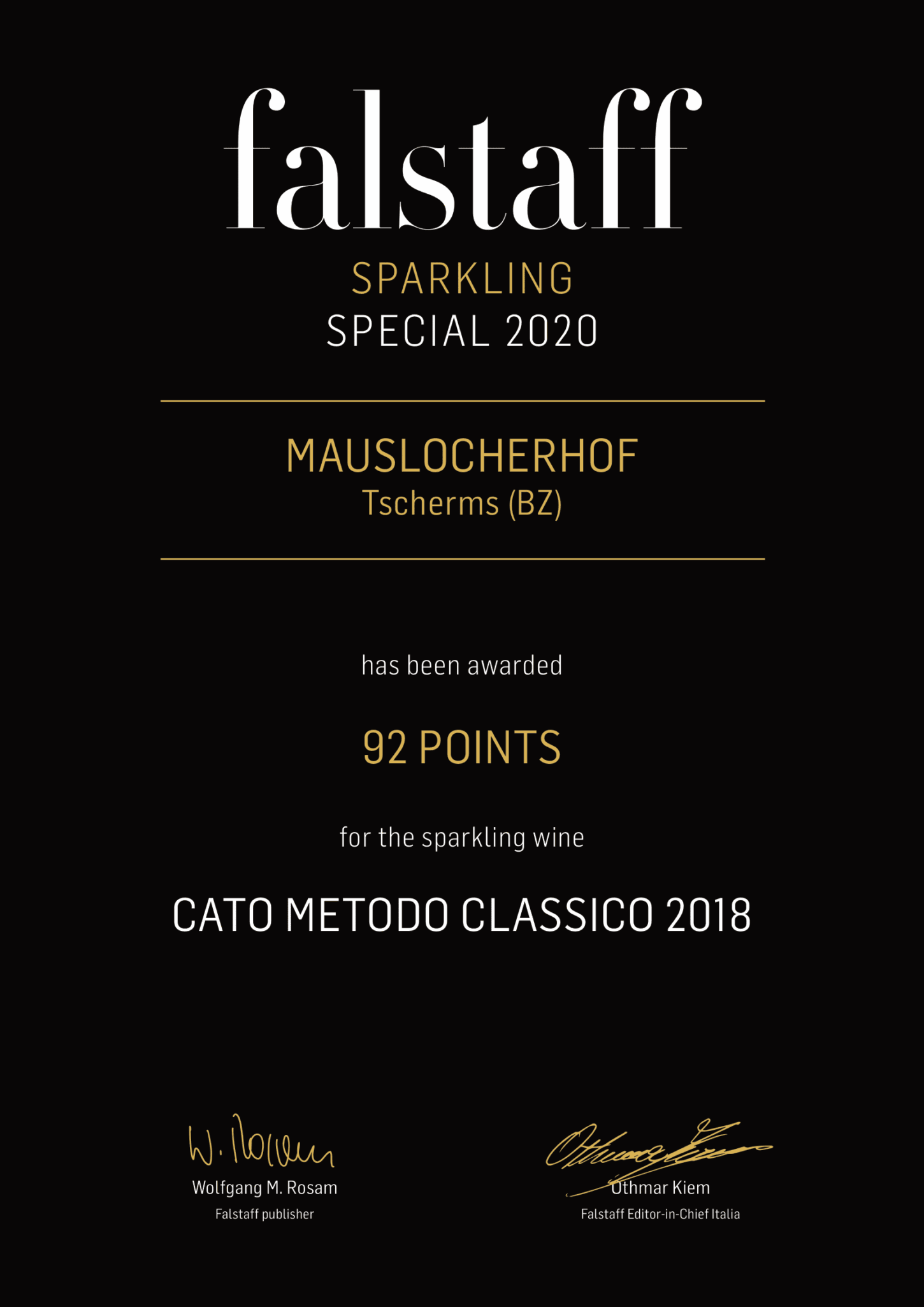 92 points at "falstaff sparkling special 2020"